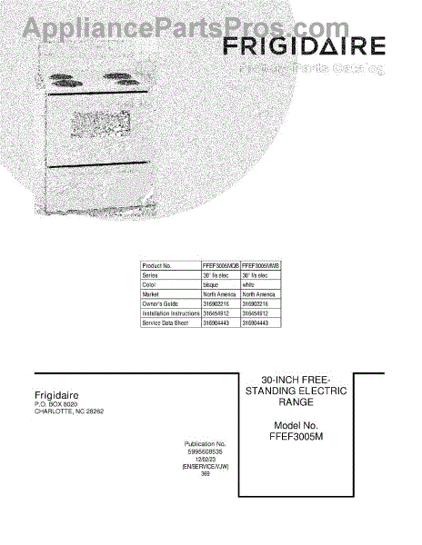 Parts for Frigidaire FFEF3005MWB: 01 - Cover Parts