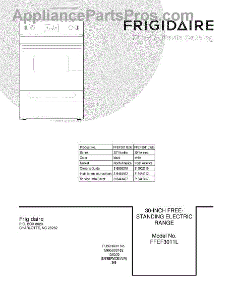 Parts for Frigidaire FFEF3011LBE: 01 - Cover Parts