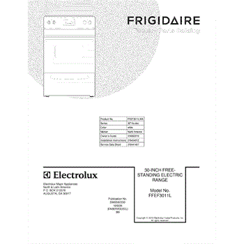 Parts for Frigidaire FFEF3011LWA: 01 - Cover Parts
