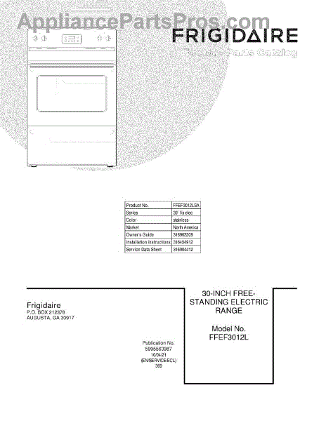 Parts for Frigidaire FFEF3012LSA: 01 - Cover Parts
