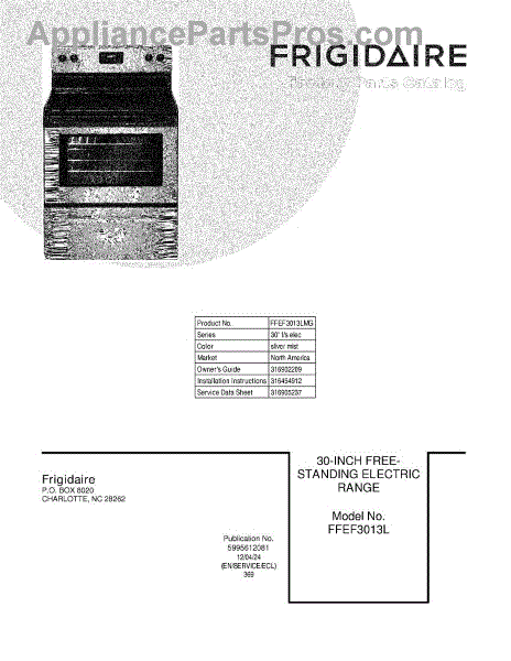 Parts for Frigidaire FFEF3013LMG: 01 - Cover Parts