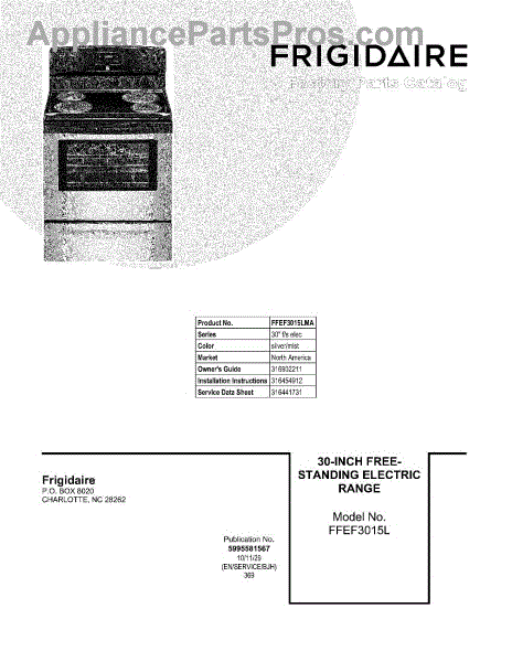 Parts for Frigidaire FFEF3015LMA: 01 - Cover Parts