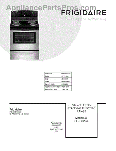 Parts for Frigidaire FFEF3015LMG: 01 - Cover Parts