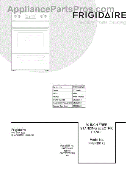 Parts for Frigidaire FFEF3017ZWC: 01 - Cover Parts