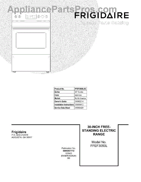 Parts for Frigidaire FFEF3050LSC: 01 - Cover Parts