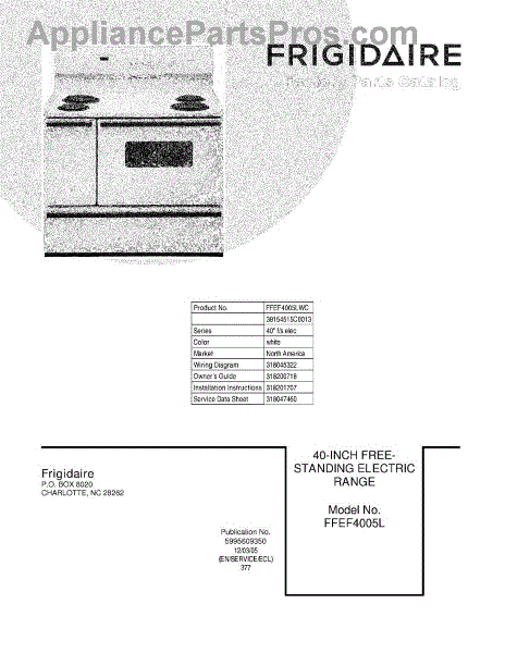 Parts for Frigidaire FFEF4005LWC: 01 - Cover Parts