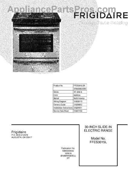 Parts for Frigidaire FFES3015LSA: 01 - Cover Parts