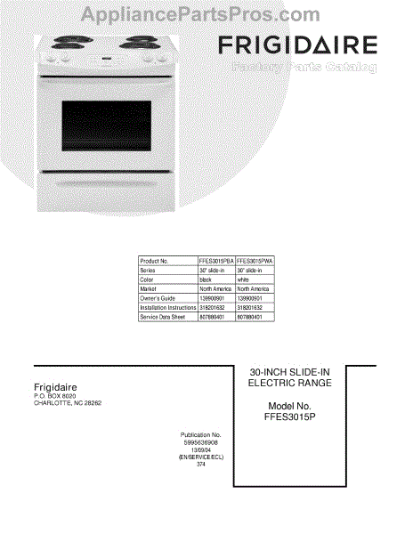 Parts for Frigidaire FFES3015PBA: 01 - Cover Parts