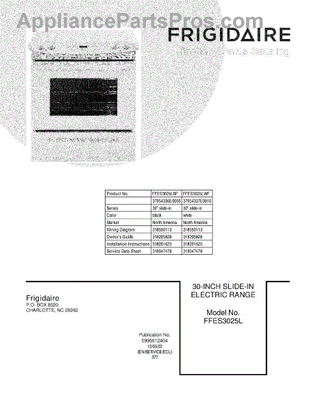Parts for Frigidaire FFES3025LBF: 01 - Cover Parts