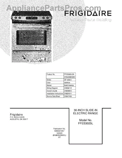 Parts for Frigidaire FFES3025LSA: 01 - Cover Parts