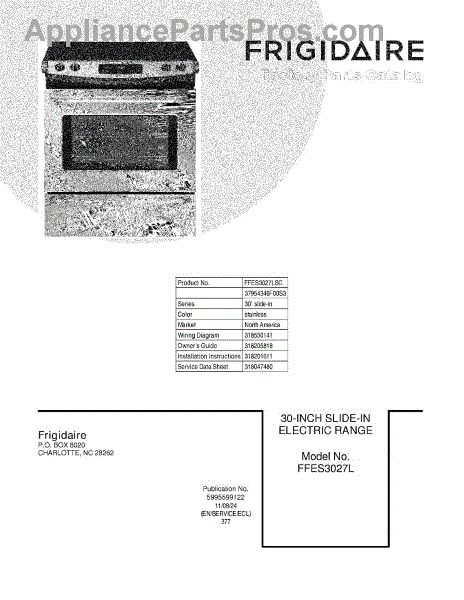 Parts for Frigidaire FFES3027LSC: 01 - Cover Parts