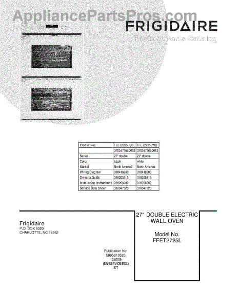 Parts for Frigidaire FFET2725LBB: 01 - Cover Parts