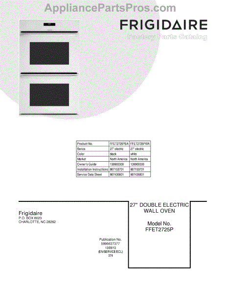 Parts for Frigidaire FFET2725PBA: 01 - Cover Parts