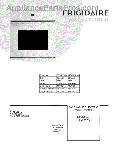 Parts for Frigidaire FFEW3025PBA: 01 - Cover Parts