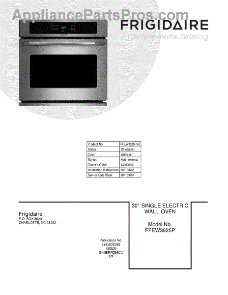Parts for Frigidaire FFEW3025PSA: 01 - Cover Parts