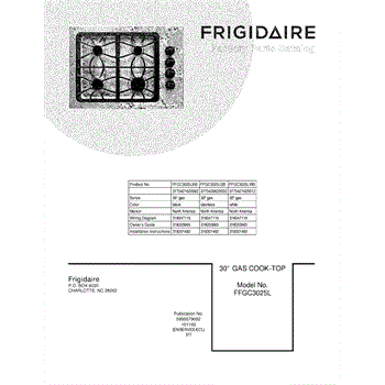 Parts for Frigidaire FFGC3025LSB: 01 - Cover Parts