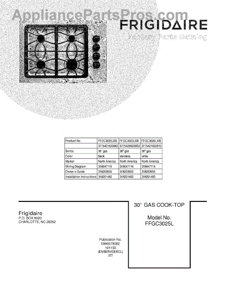 Parts for Frigidaire FFGC3025LWB: 01 - Cover Parts