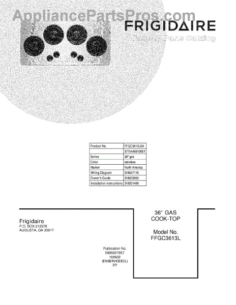 Parts for Frigidaire FFGC3613LSA: 01 - Cover Parts