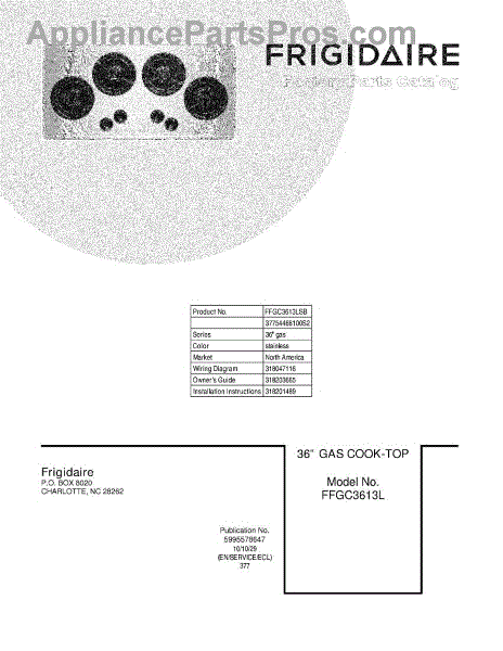 Parts for Frigidaire FFGC3613LSB: 01 - Cover Parts