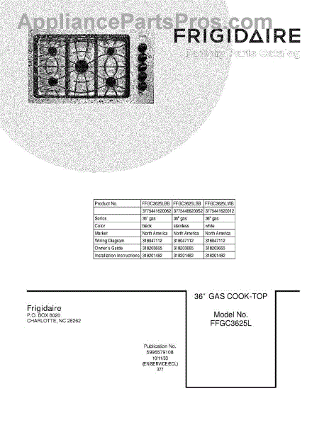 Parts for Frigidaire FFGC3625LBB: 01 - Cover Parts