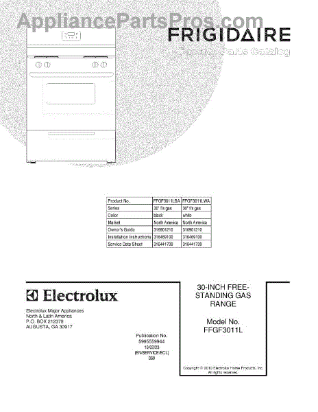Parts for Frigidaire FFGF3011LWA: 01 - Cover Parts