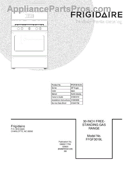 Parts for Frigidaire FFGF3019LBA: 01 - Cover Parts