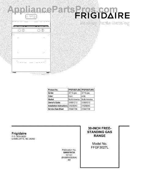 Parts for Frigidaire FFGF3019LWD: 01 - Cover Parts