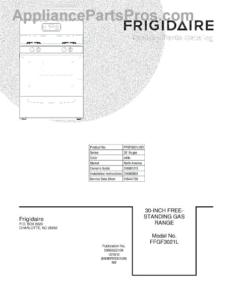 Parts for Frigidaire FFGF3021LWD: 01 - Cover Parts