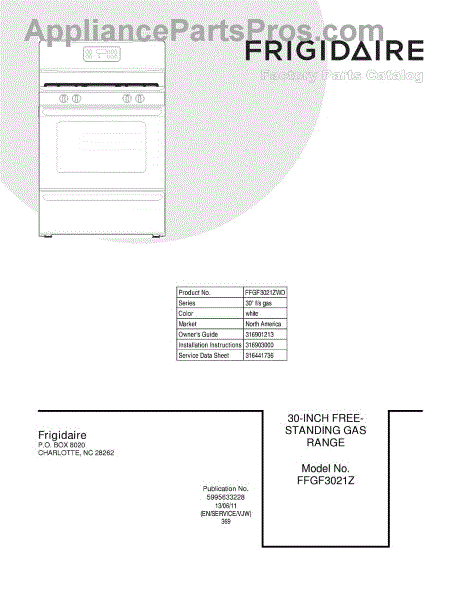 Parts for Frigidaire FFGF3021ZWD: 01 - Cover Parts