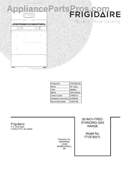 Parts for Frigidaire FFGF3027LSC: 01 - Cover Parts