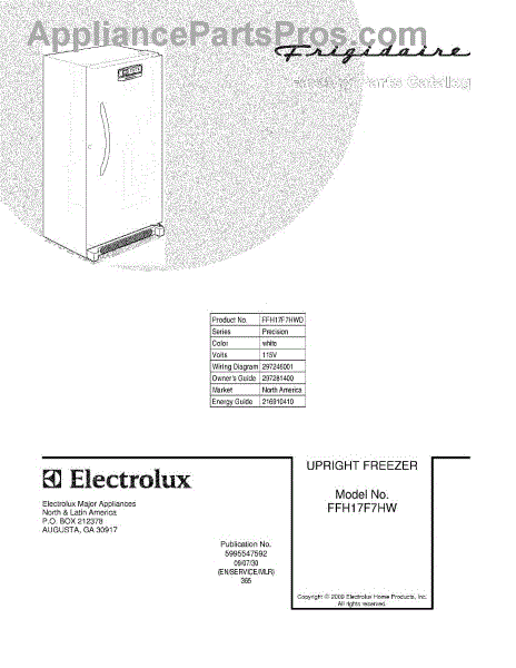 Parts for Frigidaire FFH17F7HWD: 01 - Cover Parts