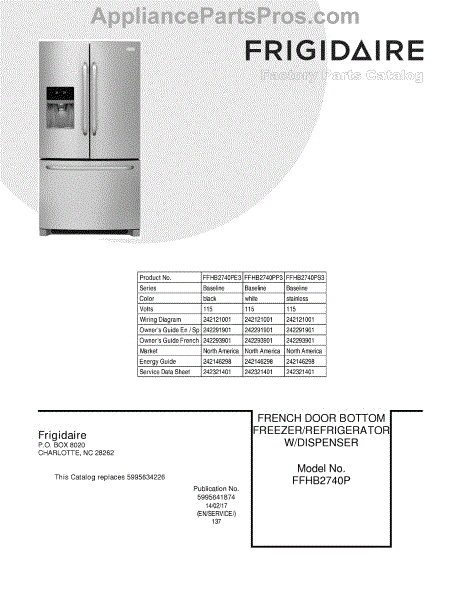 Parts for Frigidaire FFHB2740PS3: 01 - Cover Parts