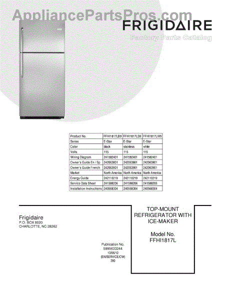 Parts for Frigidaire FFHI1817LS9: 01 - Cover Parts