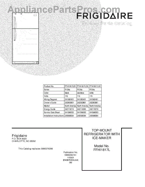 Parts for Frigidaire FFHI1817LW1: 01 - Cover Parts