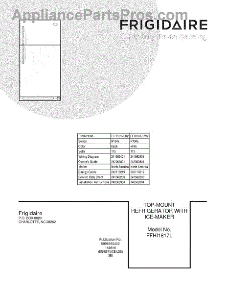 Parts for Frigidaire FFHI1817LW2: 01 - Cover Parts