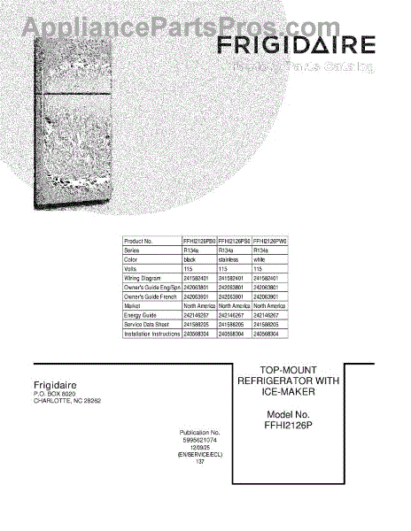 Frigidaire Refrigerator Parts