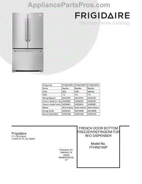 Parts for Frigidaire FFHN2740PS1: 01 - Cover Parts
