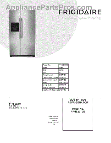 Parts for Frigidaire FFHS2312NS3: 01 - Cover Parts