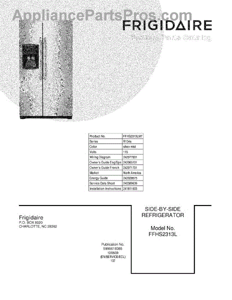 Parts for Frigidaire FFHS2313LM7: 01 - Cover Parts
