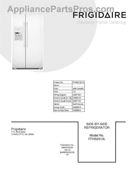 Parts for Frigidaire FFHS2313LPA: 01 - Cover Parts