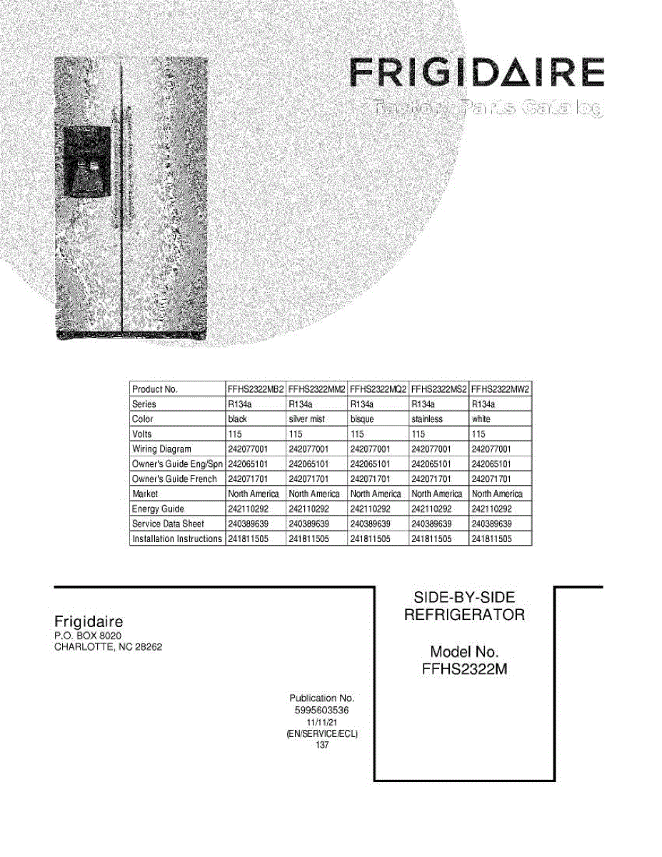 Parts for Frigidaire FFHS2322MB2: 01 - Cover Parts