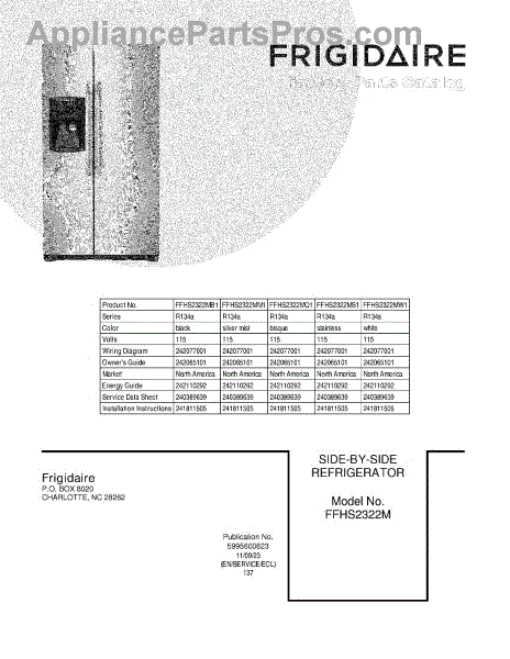 Parts for Frigidaire FFHS2322MS1: 01 - Cover Parts