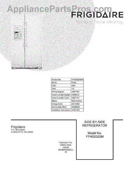 Parts for Frigidaire FFHS2322MW4: 01 - Cover Parts