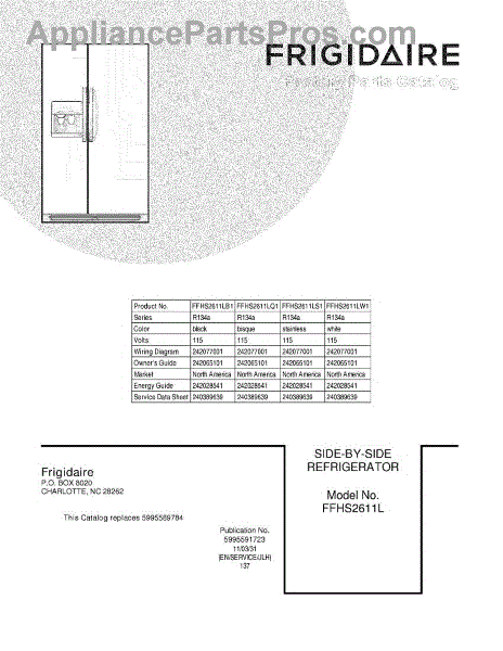 Parts for Frigidaire FFHS2611LB1: 01 - Cover Parts