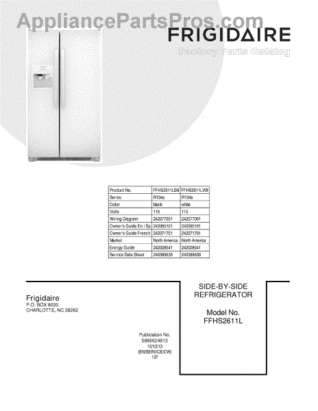 Parts for Frigidaire FFHS2611LB8: 01 - Cover Parts