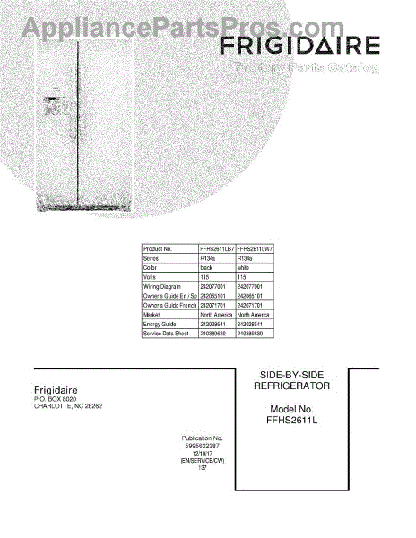 Parts for Frigidaire FFHS2611LW7: 01 - Cover Parts