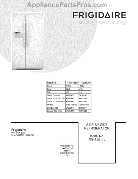 Parts for Frigidaire FFHS2611LWG: 01 - Cover Parts