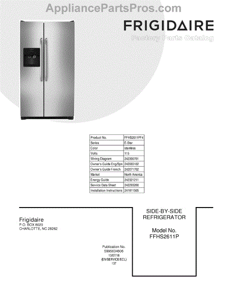 Parts for Frigidaire FFHS2611PF4: 01 - Cover Parts