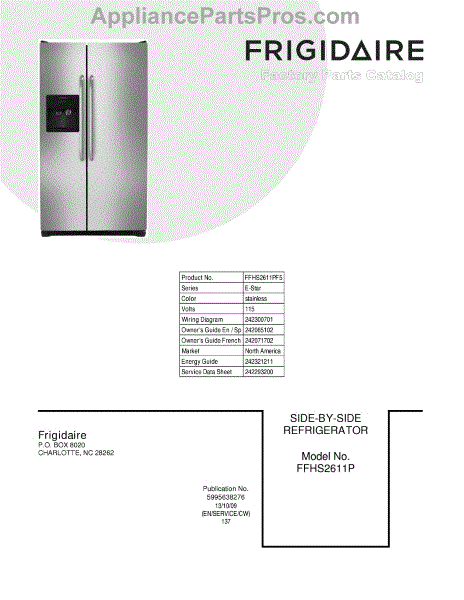 Parts for Frigidaire FFHS2611PF5: 01 - Cover Parts