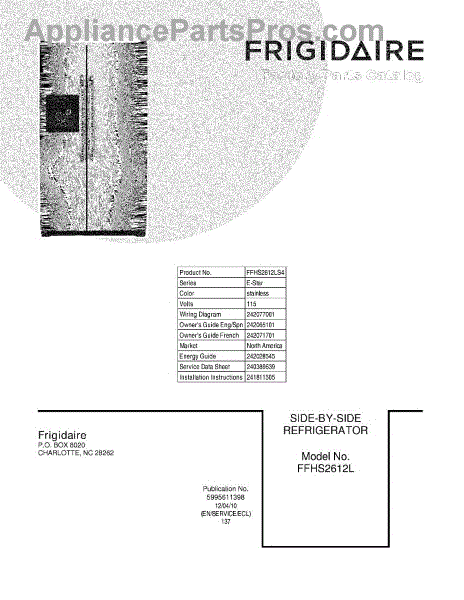 Parts for Frigidaire FFHS2612LS4: 01 - Cover Parts